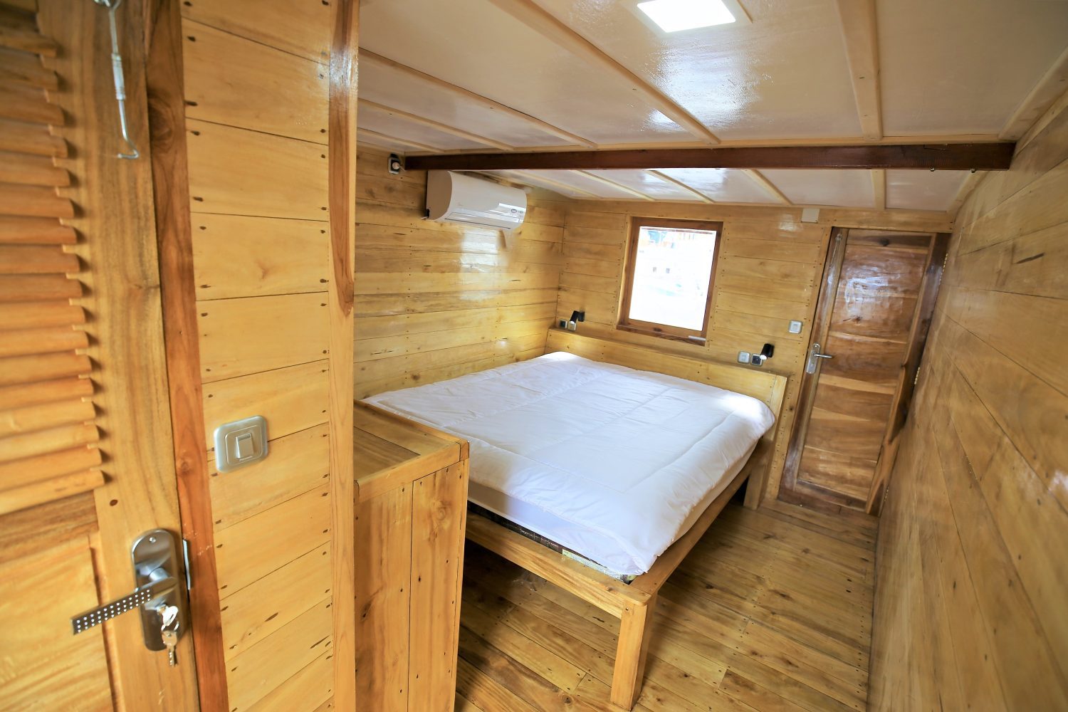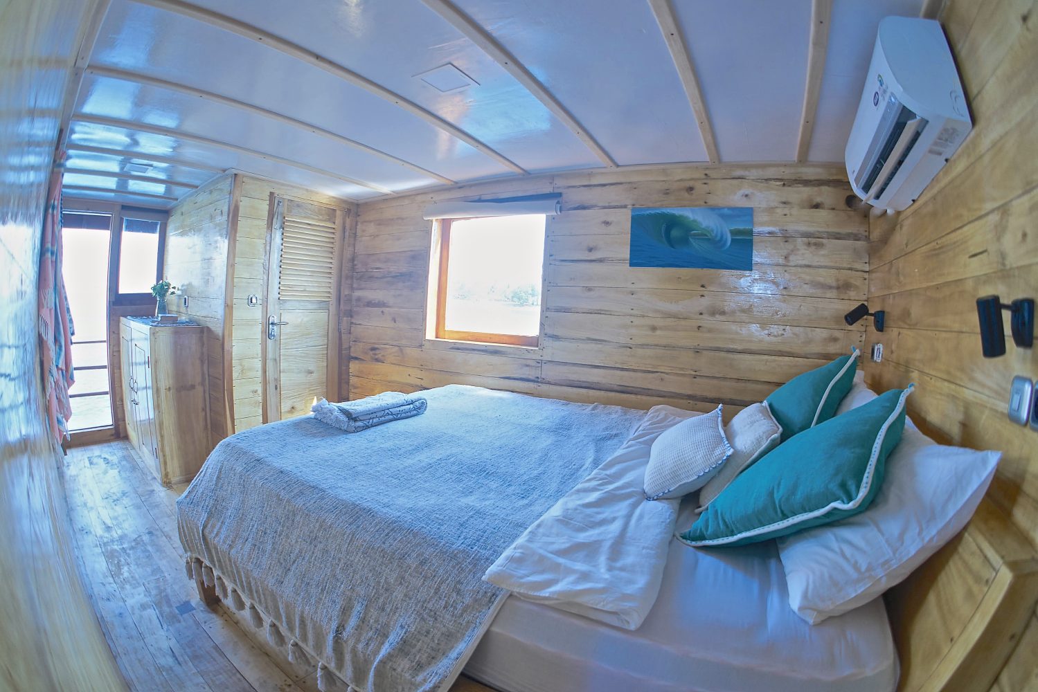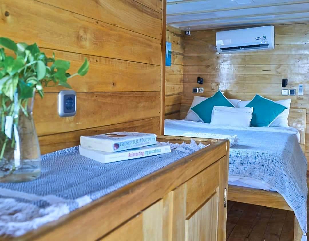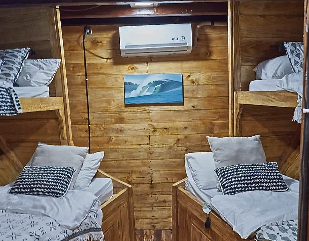 Todas as cabines possuem ar-condicionado e banheiro privativo, garantindo conforto após longos dias de surf.